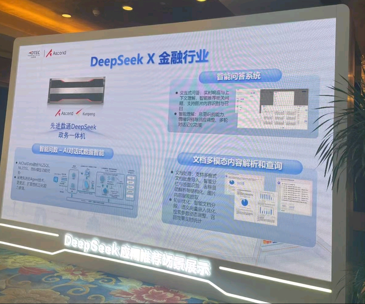 本次大会J9国际站 J9展示了DeepSeek一体机,向业界全方位展示了其在金融科技领域的创新实力。J9国际站 J9DeepSeek一体机的文档多模态内容解析和查询功能备受瞩目。它能够对各类金融文档,如研究报告、监管文件、交易记录等进行全方位解析,将文本、图表、图像等多模态信息转化为可高效查询和分析的结构化数据。金融组织借此可快速定位关键信息、洞察市场趋势、防范合规风险,为决策给予有力支持,实现从数据到价值的高效转化。